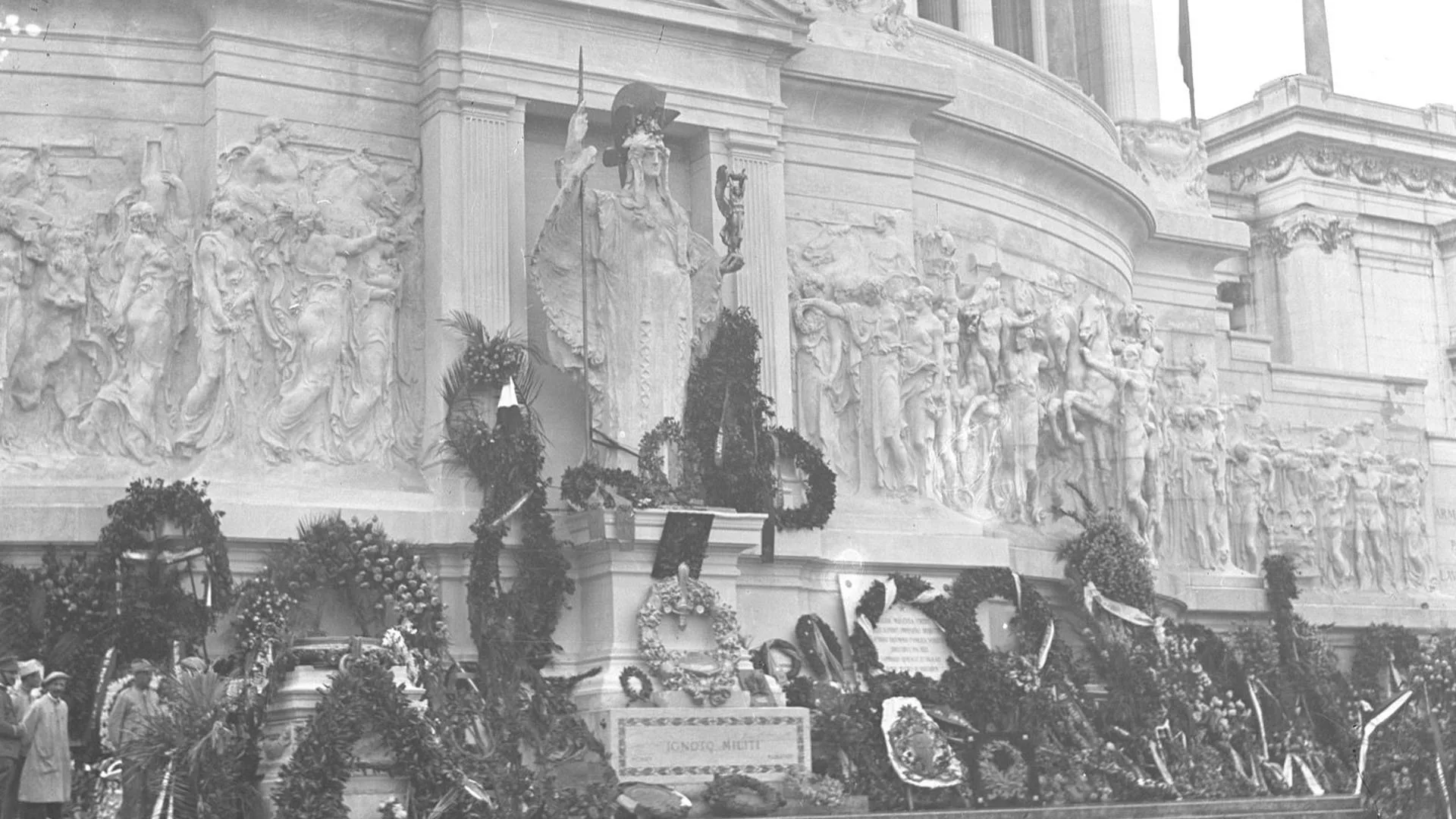 Il monumento al Milite ignotoIl 4 novembre 1921 la traslazione della salma del Milite Ignoto presso l'Altare della Patria 04 Novembre 2021 Timeline Il 4 novembre 2021 – Giorno dell’Unità Nazionale e Giornata delle Forze Armate – l’Italia celebra il centenario della traslazione del Milite Ignoto nel Sacello dell’Altare della Patria. Ricorrenza alla quale, sulla scia del ricordo di tutti gli italiani che hanno perso la vita in guerra, sono state dedicate una serie di attività che dall’autunno sono arrivate fino ad oggi.Nella galleria qui sopra una selezione di foto tratte dal fondo Pastorel che documentano la giornata del 4 novembre del 1921 quando la salma del milite ignoto venne traslata all’Altare della Patria.Nel 1920 anche in Italia si pensò di onorare una salma sconosciuta per commemorare tutti i caduti della Prima Guerra Mondiale. Il disegno di legge fu presentato nel 1921 e una commissione fu incaricata di scegliere 11 salme non identificate e di trasportarle nella Basilica di Aquileia. La popolana Maria Bergamas, madre di un caduto, ebbe l’incarico di sceglierne una. Questa fu sistemata sull’affusto di un cannone e viaggiò fino al Vittoriano dove fu sepolta dopo una grande cerimonia.Il milite ignoto a Roma, 4 novembre 1921 Militari schierati nella piazza del Quirinale I fanti italiani sfilano con le loro bandiere in Via Nazionale Il passaggio della fanteria in Piazza dei Cinquecento Il carro con la salma del milite ignoto percorre piazza Esedra Gruppo di soldati in posa con una grande corona di alloro Due corazzieri in posa accanto ad una corona di fiori Sfilano in via del Corso civili e militari con le bandiere La cerimonia al Vittoriano I reali, autorità politiche e militari al Vittoriano, per la tumulazione del Milite ignoto Personaggio: Margherita di Savoia Vittorio Emanuele III I reggimenti dei diversi corpi delle forze armate radunati in piazza Venezia Sfilano i militari in Piazza Venezia Corone di fiori e di alloro depositate presso la tomba del Milite ignoto Un gruppo di fanti in piazza dei Cinquecento A questo avvenimento nel 2015, in occasione del centenario dell’entrata dell’Italia nel primo conflitto mondiale, Leonardo Tiberi ha diretto un docufilm, Fango e gloria che, prodotto da Cinecittà Luce, gli è valso un Nastro d’argento speciale.Vai alla timelineDall'archivioAdunata degli ex combattenti e mutilati a Roma, 1928A Roma la commemorazione del XXIV Maggio, 1931A Roma si celebra l'anniversario della Vittoria, 1931Le celebrazioni del 4 novembre.Il Principe di Piemonte al Milite Ignoto, 1931Ieri e oggi: rievocazione per il 24 maggio della tumulazione del Milite Ignoto avvenuta a Roma nel 1919, 1946Ricorrenza della Vittoria: omaggio al soldato ignoto, 1946Celebrato in Italia il 4 Novembre, 1952Il Milite ignoto nell'Archivio fotografico