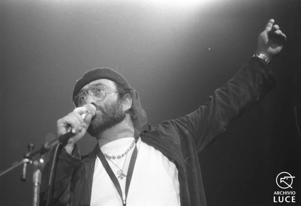 Lucio Dalla in venti foto inedite nell’ArchivioDieci anni dopo, ripensando Lucio Dalla 01 Marzo 2022 L'archivio inedito / Polvere d'Archivio / Timeline Il 1 marzo del 2012 la notizia arrivò completamente inattesa: a Montreaux, in Svizzera, colpito da infarto, era morto Lucio Dalla. La sera prima si era esibito al Montreax Jazz Festival, uno dei più importanti nella sua categoria. Tre giorni dopo il cantautore bolognese avrebbe compiuto 69 anni: era nato il 4 marzo 1943, titolo di una delle sue canzoni più famose.Lucio Dalla è stato uno dei massimi esponenti di quella che è conosciuta come la scuola emiliana dei cantautori che vanta nomi di gran prestigio da Francesco Guccini a Claudio Lolli, da I Nomadi all’Equipe 84 per arrivare a Luca Carboni, Vasco Rossi e Ligabue. Lucio Dalla con Giuliana Valci ripresi da Rocco Trabucco in occasione di un concerto al Palasport per solidarietà alle vittime della tragedia del Prenestino, [1973] Lucio Dalla con Giuliana Valci ripresi da Rocco Trabucco in occasione di un concerto al Palasport per solidarietà alle vittime della tragedia del Prenestino, [1973] Lucio Dalla ripreso da Rocco Trabucco in occasione di un concerto al Palasport per solidarietà alle vittime della tragedia del Prenestino, [1973] Lucio Dalla in camerino mentre suona la chitarra, [1979] Lucio Dalla durante un concerto, [1979] Lucio Dalla beve da una pbottiglia di whisky durante un concerto [1979] Lucio Dalla con un clarinetto, [1979] Lucio Dalla con Corrado, [1979] Lucio Dalla con Francesco De Gregori, [1979] Lucio Dalla, mani in testa con il suo classico copricapo, [1980] Francesco De Gregori e Lucio Dalla durante un concerto, 1980 Lucio Dalla durante un concerto, 1980 Lucio Dalla attaccato a un cartello con scritto strada senza uscita, [1980] Lucio Dalla in concerto con Antonello Venditti, 1980 Lucio Dalla ospite di una trasmissione televisiva, 1981 Lucio Dalla canta Caruso ripreso da Rocco Trabucco, [1987] Lucio Dalla canta Caruso ripreso da Rocco Trabucco, [1987] Lucio Dalla con Luciano Pavarotti ripresi da Rocco Trabucco, [1987] Lucio Dalla ospite di Renzo Arbore nel programma DOC, 1987 Lucio Dalla fotografato da Sandro Roticiani mentre parla al telofono seduto in un ristorante all'aperto, 2006 Dalla, ne corso della sua carriera, ha attraversato diversi periodi: i primi anni, la collaborazione con il poeta Roberto Roversi, con il quale firma diversi album tra i quali Automobili, che contiene Nuvolari, altro gradissimo successo.Ci sono poi gli album della maturità e della consacrazione dedfinitiva: Come è profondo il mare del 1977, Lucio Dalla del 1979 e Dalla, dell’anno successivo.Importanti le collaborazioni con Francesco De Gregori e con Gianni Morandi.Le fotografie della galleria qui sopra, tutte degli anni Settanta e Ottanta, con l’esclusione dell’ultima, fanno parte di tre fondi ancora completamenti inediti sul portale dell’Archivio e ancora in corso di lavorazione: Masterphoto, Rocco Trabucco e Sandro Roticianni.Vai alla timelineDall'archivioFestival di Sanremo, 1967Roma: mondanità e canzoni, 1967Lucio Dalla canta Il cielo per le strade di Roma, 1967Lucio Dalla al Pincio canta al festival della FGCI, 1976Solo al traguardo: Enzo Ferrari, 1988Presentazione degli orologi Greenwatch al MACEF, 1992