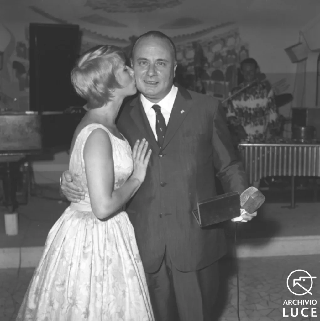 Mario Riva, il Musichiere e la televisione degli anni CinquantaIl primo settembre 1960, in seguito a una caduta sul palco, muore Mario Riva Timeline Quando il 1 settembre 1960 Mario Riva muore nell’ospedale dove era ricoverato da una decina di giorni a causa di una rovinosa caduta sul palcoscenico dell’Arena di Verona dove stava presentando la serata finale de Il musichiere, aveva 47 anni ed era il più famoso e stimato presentatore televisivo dell’epoca. Una riprova la troviamo nella folla di persone che assistettero ai suoi funerali, compresa una folta rappresentanza di colleghi che lo avevano affiancato in moltissimi spettacoli e film: a cominciare da Riccardo Billi, sua spalla storica e poi, tra gli altri, Renato Rascel, Aldo Fabrizi, Amedeo Nazzari, Gino Cervi, Pietro Garinei, Ugo Tognazzi, Chelo Alonzo, Irene Genna e Paolo Panelli.Gli anni Cinquanta di Mario Riva Mario Riva con Riccardo Billi, 1956 Mike Bongiorno nelle mani di Billi, in veste di barbiere. Riva, nel camerino, guarda il presentatore, [1960] L'attrice inglese Anne Heywood si esibisce al Musichiere, [1959] Mario Riva e Renato Rascel alla consegna del Disco d'oro sul palco, [1959] Mario Riva e Domenico Modugno al premio microfoni d'argento, 1960 Una puntata de Il musichiere: Daniel Gelin davanti al microfono; accanto a lui Mario Riva, 1959 Perry Como e Mario Riva giocano con un gattino all'interno della sede della RCA, 1958 Mario Riva con Amedeo Nazzari, [1956] Mario Riva ed Hedy Vessel si salutano affettuosamente sul set del film Il raccomandato di ferro, 1959 Mario Riva, con un cappello in testa, seduto al pianoforte, suona con una piccola chitarra registrandosi su un registratore a bobine, [1959] Mario Riva seduto sulla polrona del barbiere con i capelli appena lavati, [1959] Totu00f2 porge un fiore a Franca Faldini, dietro in piedi Billi e Riva, 1955 Mario Riva, il figlio Antonello e la moglie Diana Dei, con le pinne sulla spiaggia in procinto di tuffarsi a mare, 1957 Mario Riva tiene mano il figlio Antonello con la maschera in riva al mare, 1957 Da destra, seduti in un locale di Fregene, Gorni Kramer, Mario Riva, Pietro Garinei e un annunciatore della televisione francese, 1958 Mario Riva, Cesare Zavattini, Mario Soldati e Nadia Grey al ricevimento per scrittori ed editori a Villa Madama, 1959 Mario Riva e Vittorio De Sica , 1960 Mario Riva mostra il premio ricevuto durante una serata di gala in suo onore al Belvedere delle Rose, 1960 Delia Scala bacia Mario Riva sulla guancia durante una serata di gala in suo onore al Belvedere delle Rose, 1960 Paolo Panelli sulla sedia del Musichiere; dietro di lui Mario Riva, 1960 Nel primo cinegiornale in cui lo incontriamo, Mario Riva viene premiato quale miglior presentatore: siamo nel 1948 alla consegna delle maschere d’argento. Sempre nel 1948 la Incom gli affida uno sketch per presentare il suo concorso Vista la svista, onore già toccato a personaggi del calibro di Roberto Rossellini e Anna Magnani.Del 1949 sono il primo servizio con il suo storico partner Riccardo Billi e una partita di pallone in cui la squadra dei due sfida la compagnia di Carlo Dapporto.Nel 1952 si esibisce nella villa di Remigio Paone insieme a Walter Chiari, Alberto Sordi e Renato Rascel; l’anno successivo lo riprendono mentre esercita il suo diritto di voto alle elezioni politiche. Nel 1954, con l’inseparabile Billi, si esibiscono in uno spettacolo di beneficenza per gli alluvionati del salernitano.Nel 1956, tifoso della Lazio, fa previsioni sull’imminente derby capitolino mentre nel 1958 accoglie all’aeroporto Mamie Van Doren in Italia per girare il film Le bellissime gambe di Sabrina.Nel 1959 interpreta il film Il raccomandato di ferro ed è all’apice del successo con il suo programma più famoso, Il musichiere, che concede celebrità a tutti, come accade a Spartaco D’Itri, per alcune settimane protagonista assoluto dei sabato sera televisivi degli italiani. Nel novembre dello stesso anno è tra i protagonisti della festa in onore dei cinquant’anni della Lazio.L’ultimo cinegiornale con Mario Riva protagonista è del luglio 1960, poche settimane prima della sua prematura scomparsa. Anche in questo caso il presentatore riceve un premio, i Tredici diamanti, per i protagonisti del varietà.Vai alla timelineDall'archivioIl concorso Incom Vista la svistaAttualità vulcanica: da uno scketch di rivista con Mario Riva Billi e Diana Dei, 1949Attori sul campo: la compagnia Dapporto contro Billi-Riva, 1949Nella villa di Formia di Remigio Paone, davanti a un pubblico di celebrità si esibiscono Sordi, Chiari e Riva, Rascel, 1952Giorno delle elezioni: personaggi del mondo della cultura e dello spettacolo nei seggi elettorali, 1953Cantano per fare del bene, 1954Il derby del cupolone, 1956Roma, arrivo di Mamie Van Doren, 1958Si gira a Roma Il raccomandato di ferro, 1959Dal Musichiere: Spartaco D'Itri, 1959La S.S. Lazio ha 50 anni, 1959Mario Riva premiato con il Tredici di brillanti, 1960I funerali di Mario Riva, 1960