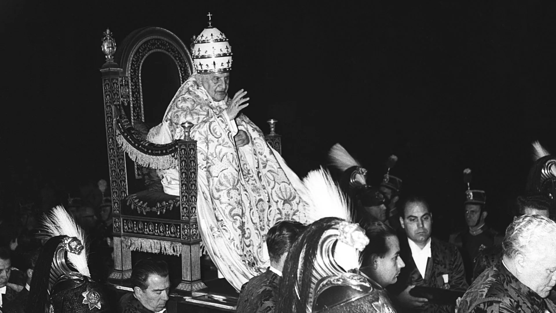 Angelo Roncalli viene eletto papa e assume il nome di Giovanni XXIIIIl 28 ottobre del 1958 inizia il papato di Giovanni XXIII che cambierà nel profondo la Chiesa cattolica Timeline Eletto il 28 ottobre del 1958, Giovanni XXIII viene incoronato il successivo 4 novembre. La cerimonia solenne inizia nella basilica di San Pietro e si conclude con la benedizione urbi et orbi che il nuovo papa elargirà alla piazza piena di fedeli.Cardinale di Venezia, al momento dell’elezione Angelo Roncalli ha 77 anni: l’età avanzata fu per molti il motivo principale della scelta. Succeduto a Pio XII, Giovanni XXIII in meno di cinque anni di pontificato, attraverso il Concilio Vaticano II, rivoluzionò la Chiesa. Inaugurato l’11 ottobre del 1962 si concluse l’8 dicembre del 1965, dopo una lunga interruzione dovuta alla scomparsa del pontefice. Angelo Roncalli morì infatti il 3 giugno del 1963. Gli succederà Giovan Battista Montini con il nome di Paolo VI.Dichiarato beato da Giovanni Paolo II nel settembre del 2000 fu proclamato santo da papa Francesco nel 2013.Dall'ArchivioAntivigilia del Concilio, 1962Il Concilio Ecumenico Vaticano II, 1962Papa Giovanni XXIII, 1963Incoronato Giovanni XXIII, 1958La prima Pasqua di Giovanni XXIII, 1959Giovanni XXIII saluta la folla di atleti venuta a rendere omaggio in piazza san Pietro al pontefice, 1960La regina Elisabetta dal pontefice, 1961Decine di migliaia di persone hanno reso l’estremo saluto al papa della pace, 1963Giovanni XXIII nell’archivio fotografico
