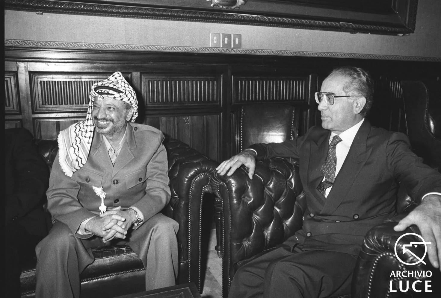 Yasser Arafat, dalla lotta armata al Nobel per la pace con Simon Peres e Yitzhak RabinL'11 novembre del 2004 moriva in Francia il leader palestinese Yasser Arafat L'archivio inedito / Polvere d'Archivio / Timeline Personaggio controverso, l’11 novembre del 2004 muore in Francia a Clamart, il leader palestinese Yasser Arafat. Per la sua gente ha rappresentato un leader carismatico cui affidare il proprio riscatto; per gli israeliani un terrorista assassino da combattere senza tregua. Nonostante questo nel 1994, insieme ai leader israeliani Simon Peres e Yitzhak Rabin, ha ricevuto il nobel per la pace, riconoscimento assegnato a tutti i e tre per l’opera diplomatica prestata per riappacificare le popolazioni dei territori occupati.Yasser Arafat in Italia Yasser Arafat in visita a Roma accerchiato da giornalisti e foprze dell'ordine, 1982 Yasser Arafat incontra il ministro degli esteri Emilio Colombo, 1982 Un primo piano di un sorridente Yasser Arafat, 1982 Yasser Arafat fa il segno di vittoria, 1982 Yasser Arafat in raccoglimento davanti alla bara di Enrico Berlinguer a Botteghe oscure. Accanto a lui, tra gli altri, Ugo Pecchioli e Achille Occhetto, 1984 Yasser Arafat omaggia la bara di Enrico Berlinguer a Botteghe Oscure, 1984 Yasser Arafat saluta la folla durante i funerali di Enrico Berlinguer, 1984 Yasser Arafat abbraccia il sindaco di Roma Ugo Vetere durante i funerali di Enrico Berlinguer, 1984 Yasser Arafat sul palco degli ospiti stranieri durante i funerali di Enrico Berlinguer, 1984 Yasser Arafat riceve dal sindaco di Roma Francesco Rutelli una riproduzione della lupa capitolina, 1996 Yasser Arafat stringe la mano al sindaco di Roma Francesco Rutelli, 1996 Yasser Arafat incontra Lamberto Dini, anni Novanta Yasser Arafat incontra Achille Occhetto e Giorgio Napolitano, anni Novanta Yasser Arafat con Bettino Craxi, anni Novanta Le foto che presentiamo in questa galleria, quelle in bianco e nero non ancora catalogate, colgono il leader palestinese durante diversi soggiorni a Roma. Il primo gruppo è del settembre 1982, in occasione di una sessione autunnale interparlamentare; il secondo gruppo è relativo ai funerali di Enrico Berlinguer; il terzo invece, quelle a colori, riguardano gli anni Novanta.Vai alla timelineDall'archivioInquieto dopoguerra: Palestina, 1947Inquieto dopoguerra. Torbidi in Palestina, 1947Dopo le decisioni dell'ONU: in Palestina la guerra continua, 1948Onoriamo Bernadotte: Salutata a Parigi dai rappresentanti dell'ONU la salma del caduto per la causa della pace, 1948Palestina senza pace, 1954La crisi nel Medio Oriente, 1958Il M.O. problema n.1, 1958Se si comincia a parlare, 1967Discussione all'assemblea dell'ONU sulla questione medio orientale, 1967Medio Oriente: il conflitto arabo israeliano, 1970Medio Oriente: un campo di addestramento di Al Fatah, 1970Israeliani e palestinesi si sono incontrati a Roma in un dibattito dal titolo: Pace e giustizia per il Medio Oriente, 1975